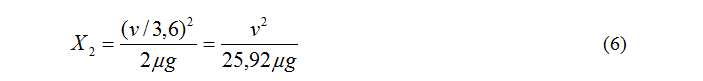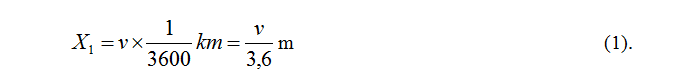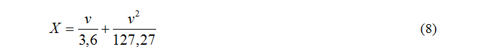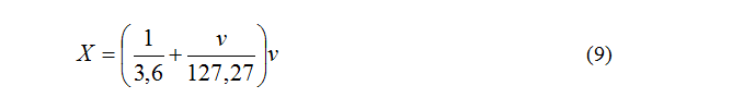 Jika v dinyataakn dalam km maka persaman (5) menjadi