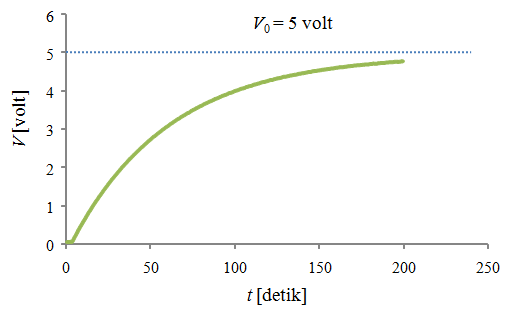 Kita mulai dari tegangan kapasitor saat proses pengisian.